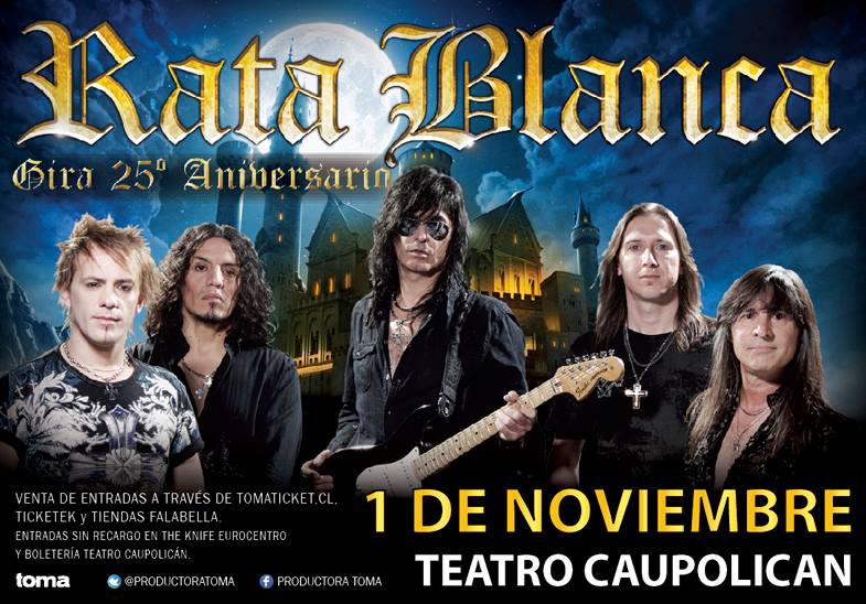 Los argentinos Rata Blanca vuelven a Chile para celebrar sus 25 años de vida con un show de larga duración. Esta vez la conmemoración de tan magno hecho vendrá con la incorporación al show de Saul Blanch, vocalista del primer disco homónimo donde destacan verdaderos himnos como ‘Sólo para amarte’ y ‘Preludio Obsesivo’.