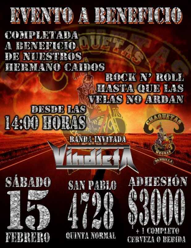 Se presentará Vindicta en evento organizado por Motociclistas Chaquetas Negras. La banda asegura show de larga duración.