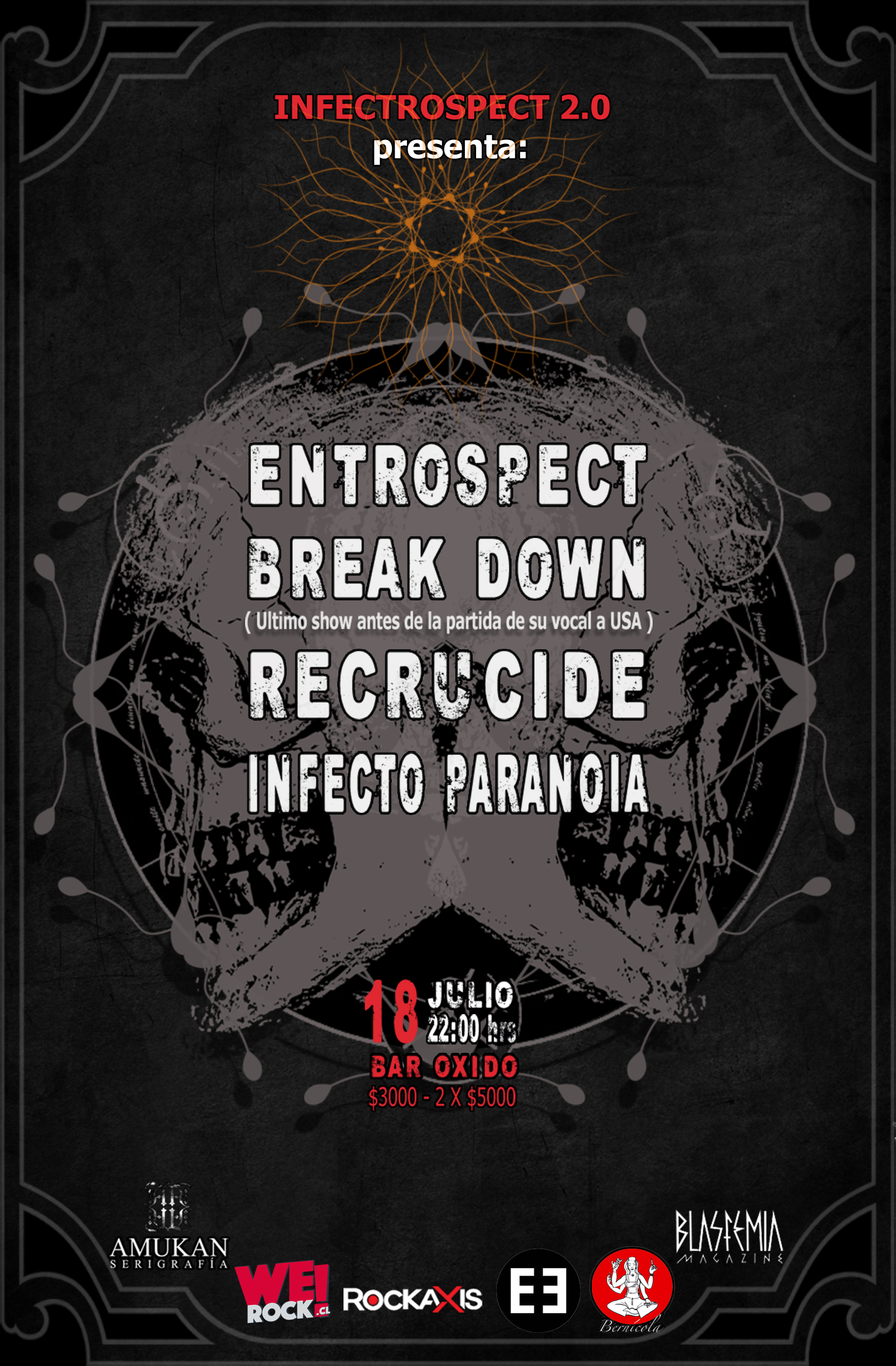Se presentarán las bandas Entrospect, Break.Down, Recrucide e Infecto Paranoia
